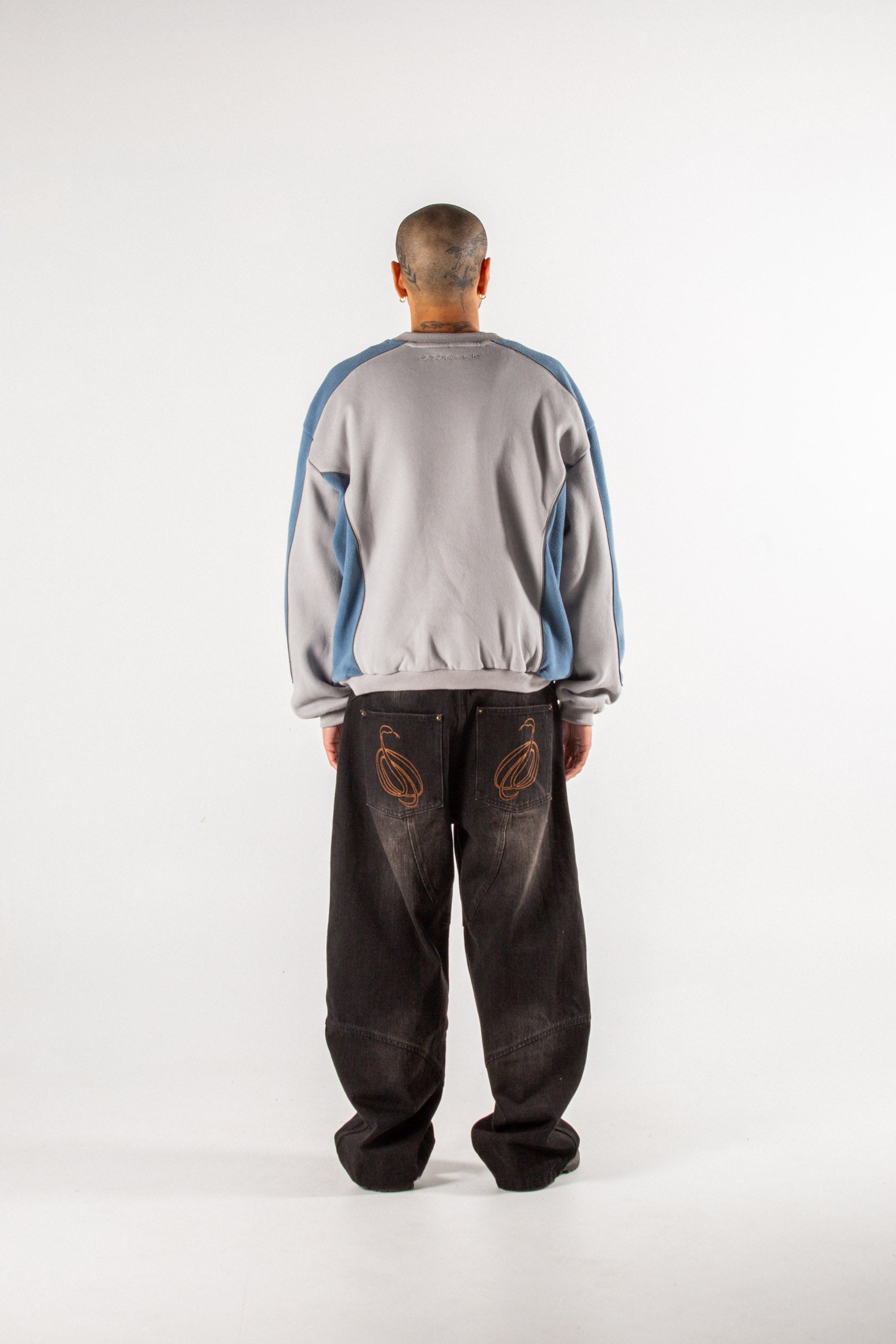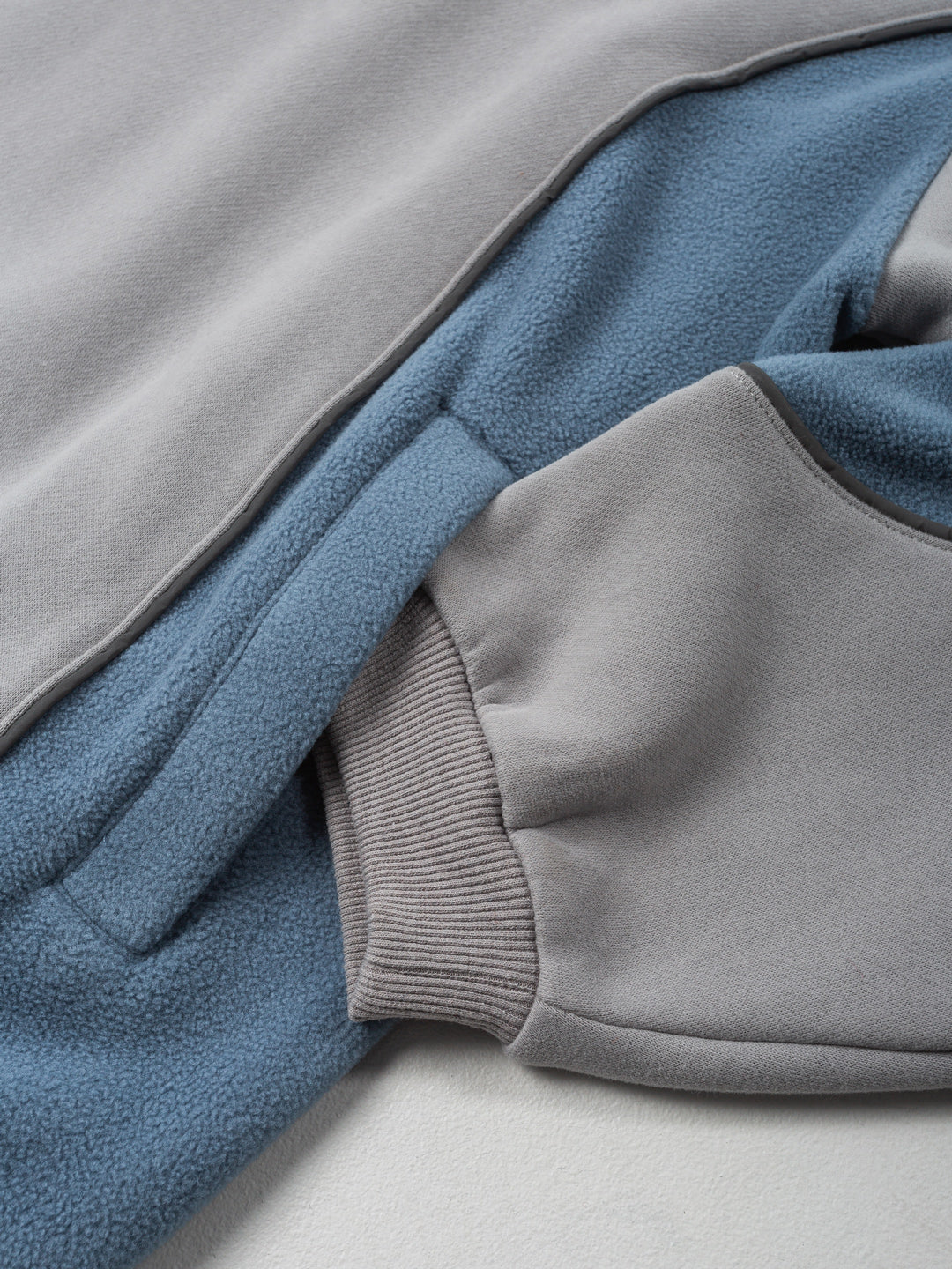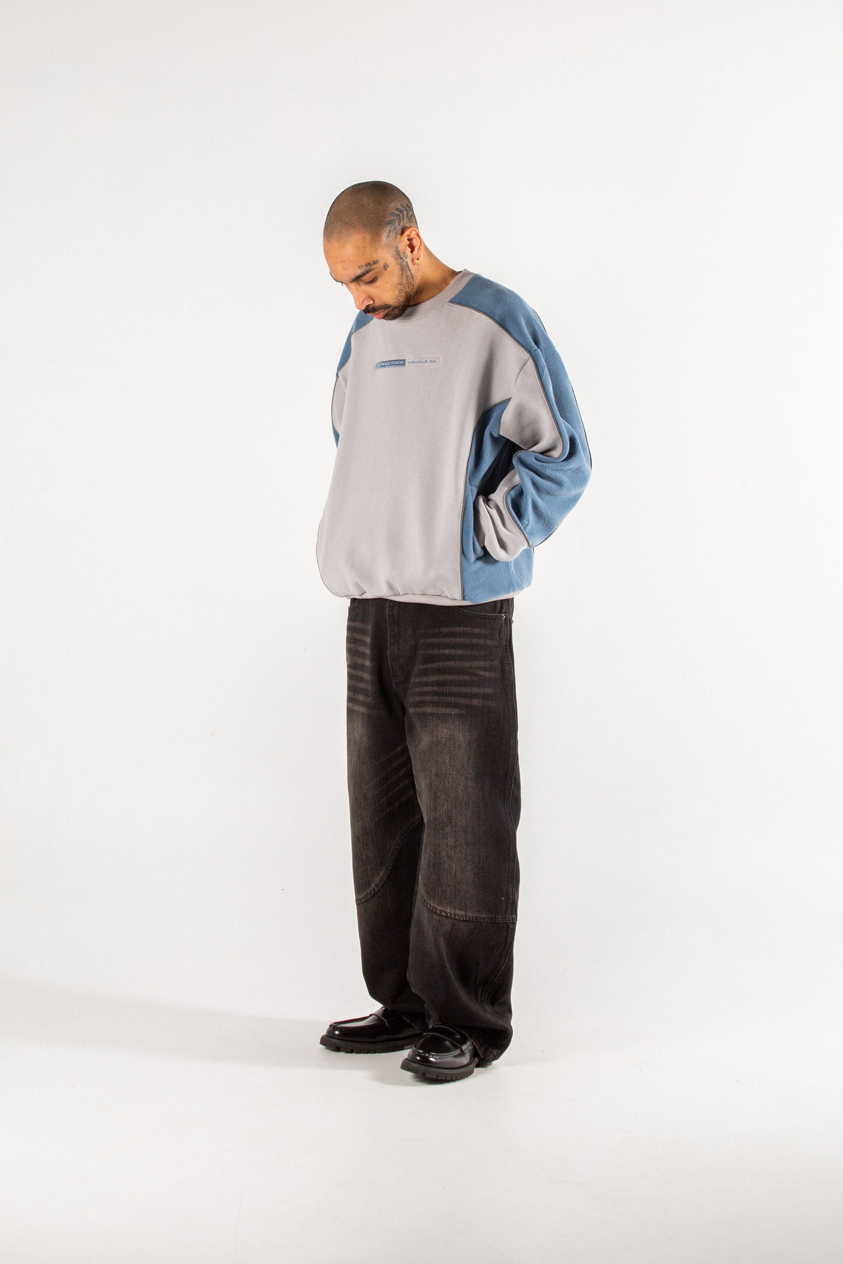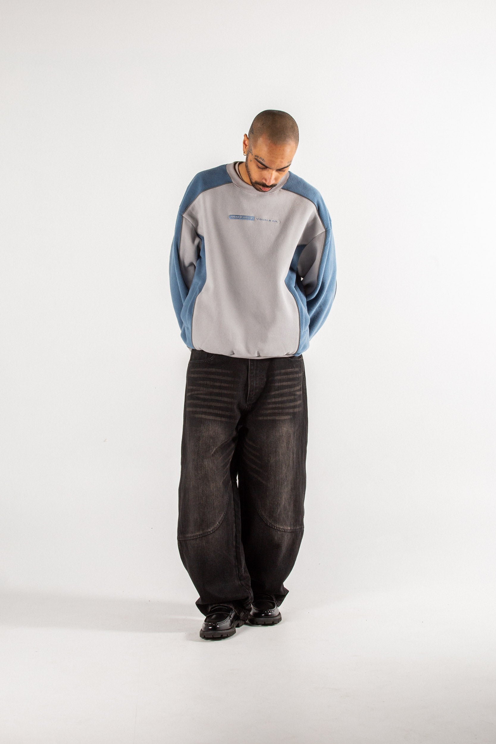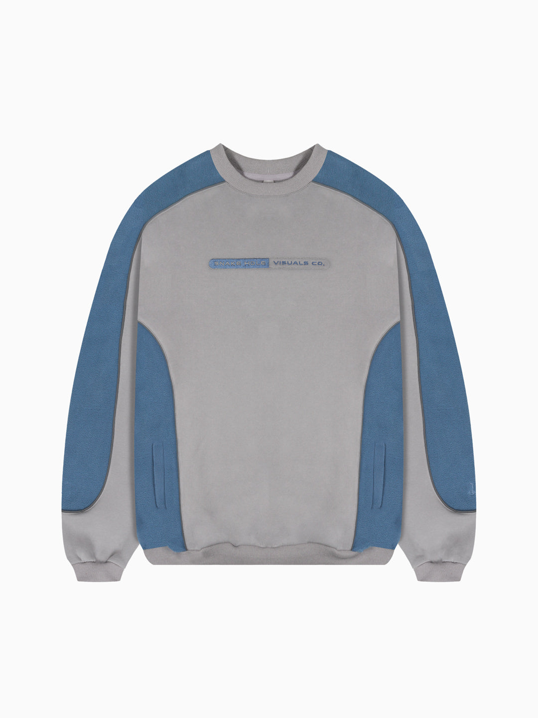 Heavyweight multi fabric fleece crew with exaggerated drop shoulder and chunky elastic 2x1 ribbing. Featuring unique two-colour panelling setup with contrast cotton and polar fleece fabric throughout. Pill logo embroidery on centre chest, finished with a plush, velvet-like hand-feel and branded embroidery on sleeve and back neck.