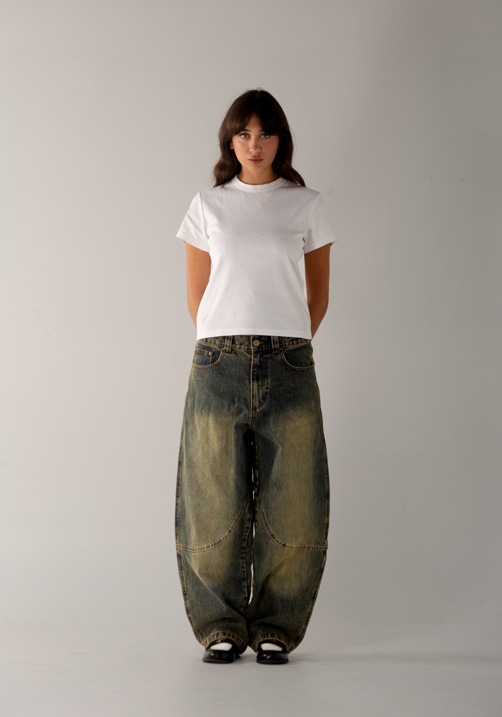 Cursive Washed Denim Jeans
