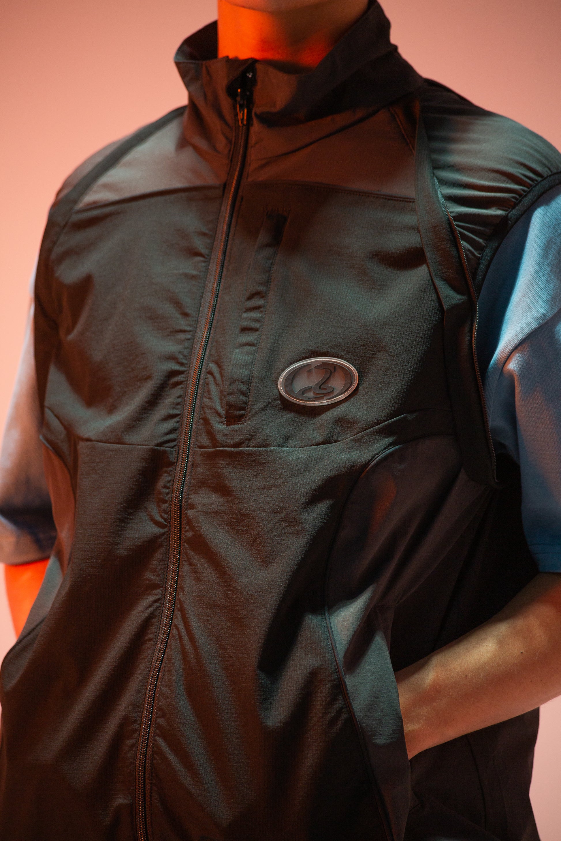 Our 'Infrared' Zip off Jacket is designed with a unisex fit constructed from 100% nylon fabric with contrast panels. Features convertible sleeves, 3 external pockets, internal mesh, YKK hardware, Snake Hole branded rubber label and custom wavy panelling design.