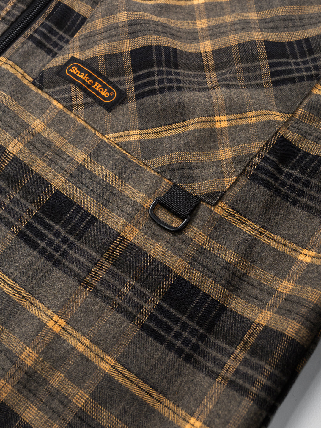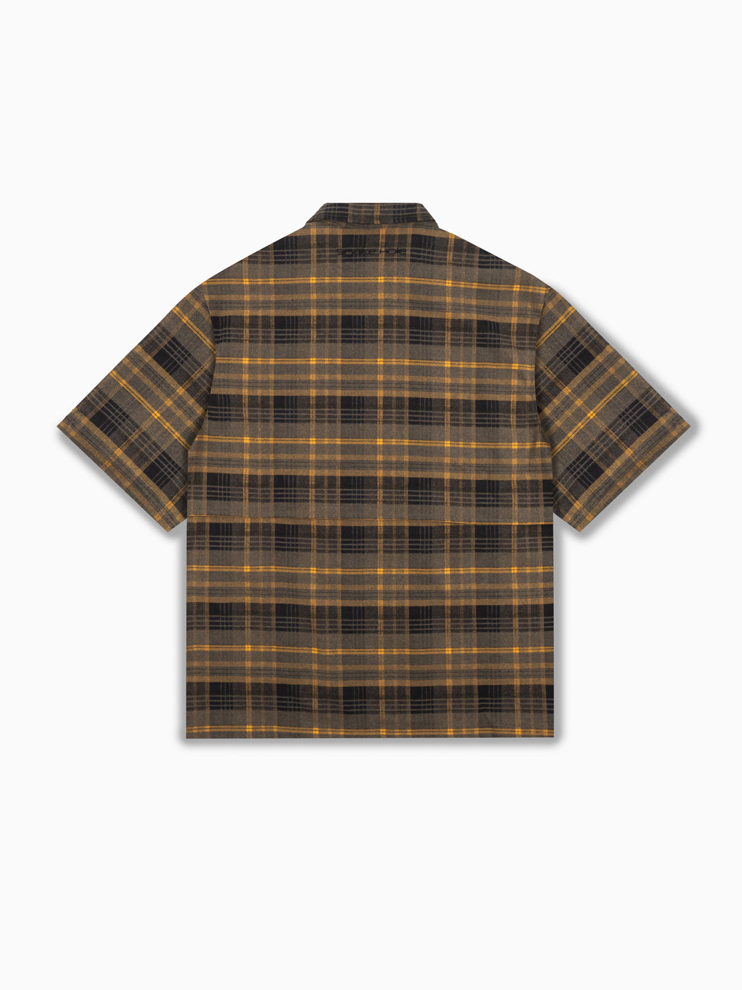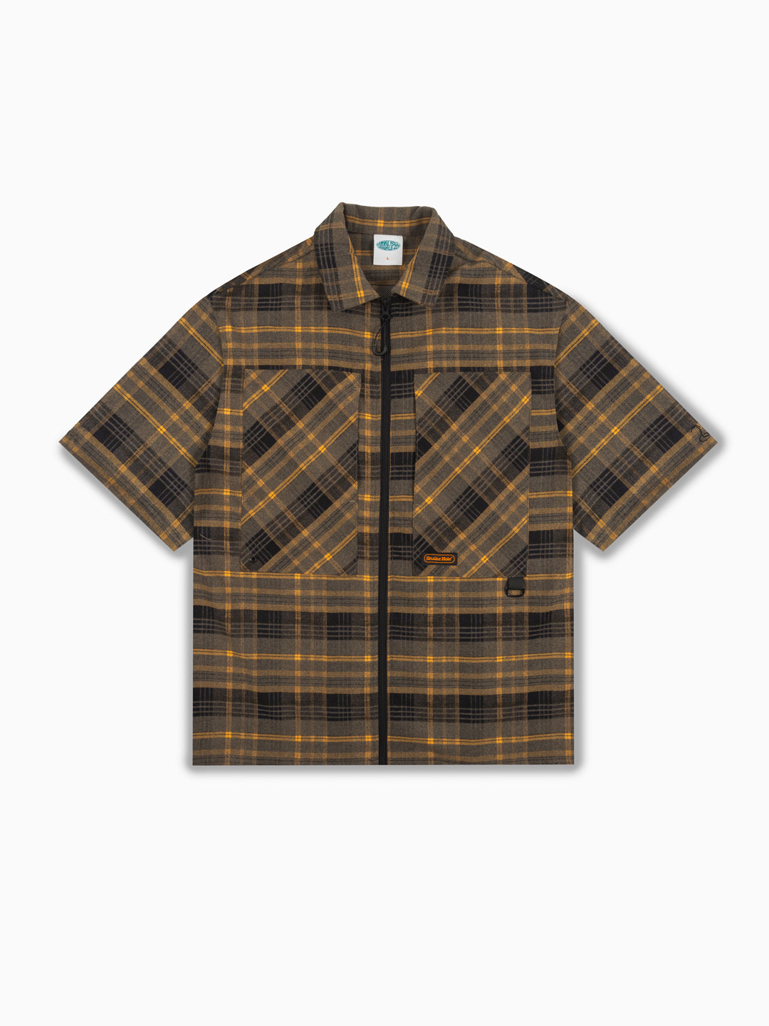 Relaxed, boxy fit unisex s/s shirt with dropped shoulder and traditional flat collar. Constructed from cotton plaid material featuring ammo pockets on front chest, back storm flap with underlay mesh ventilation, branded embroidery on chest and sleeve, metal pocket loop and YKK zip-thru closure with u-zip pull.