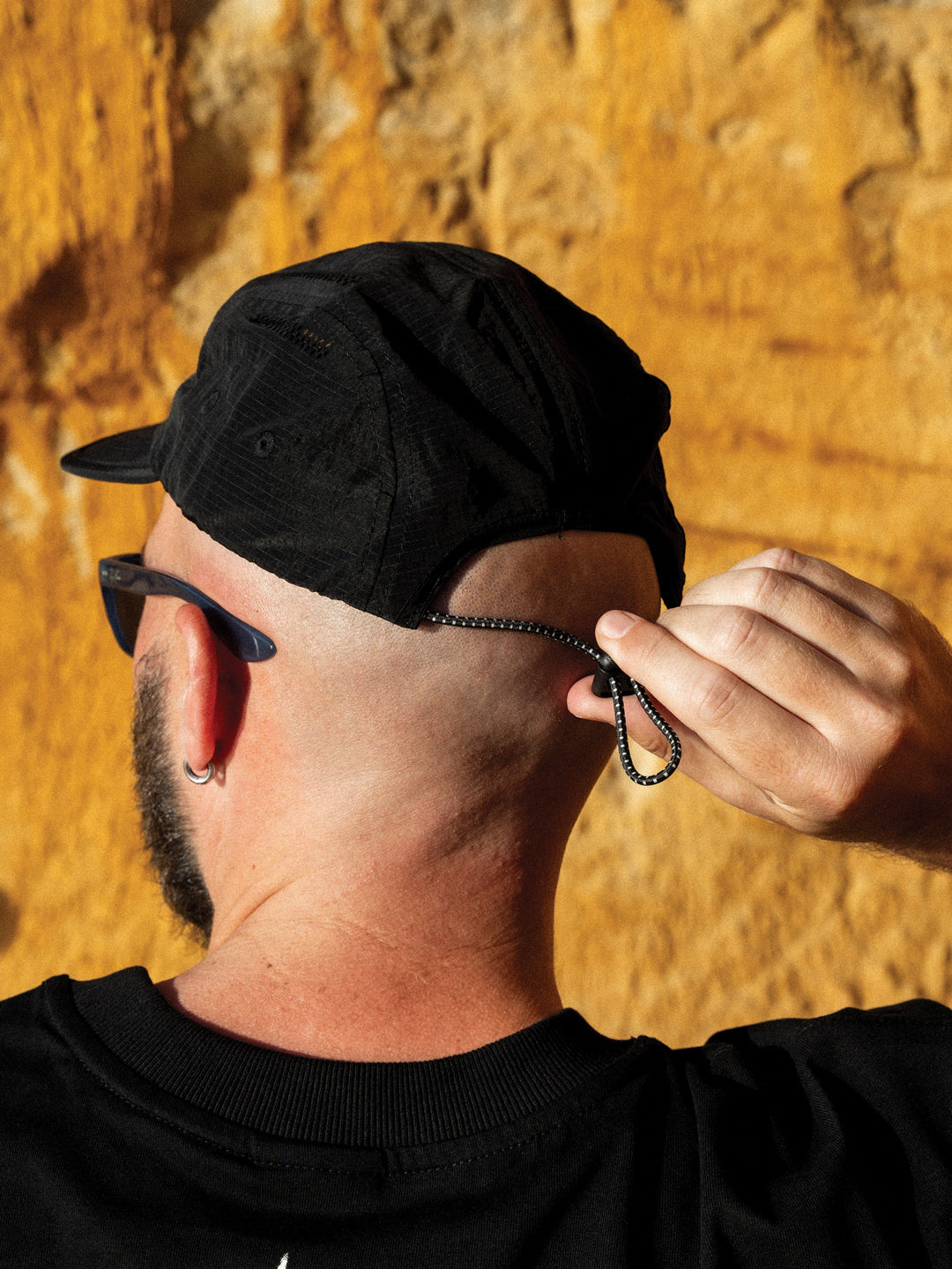Introducing our newest piece of headwear, the 'Sprinter' Cap. Constructed from lightweight quick-dry nylon ripstop, with a low profile and short flexible front brim. Finished with 'Snake Hole' woven label and cinch pull back closure.