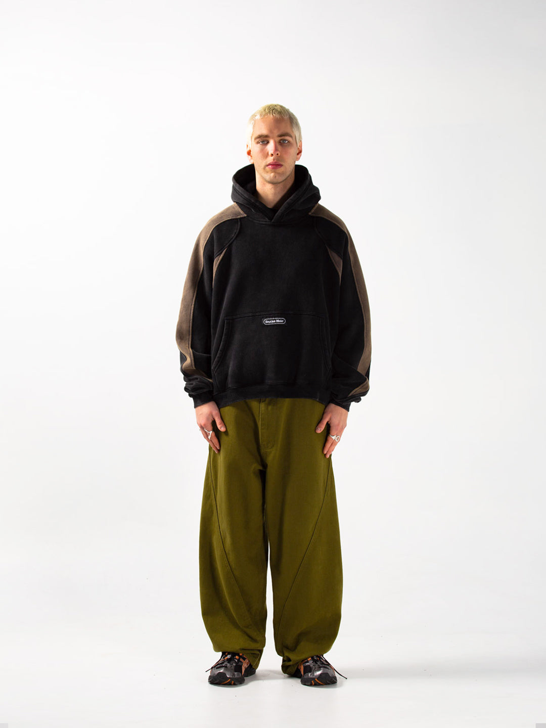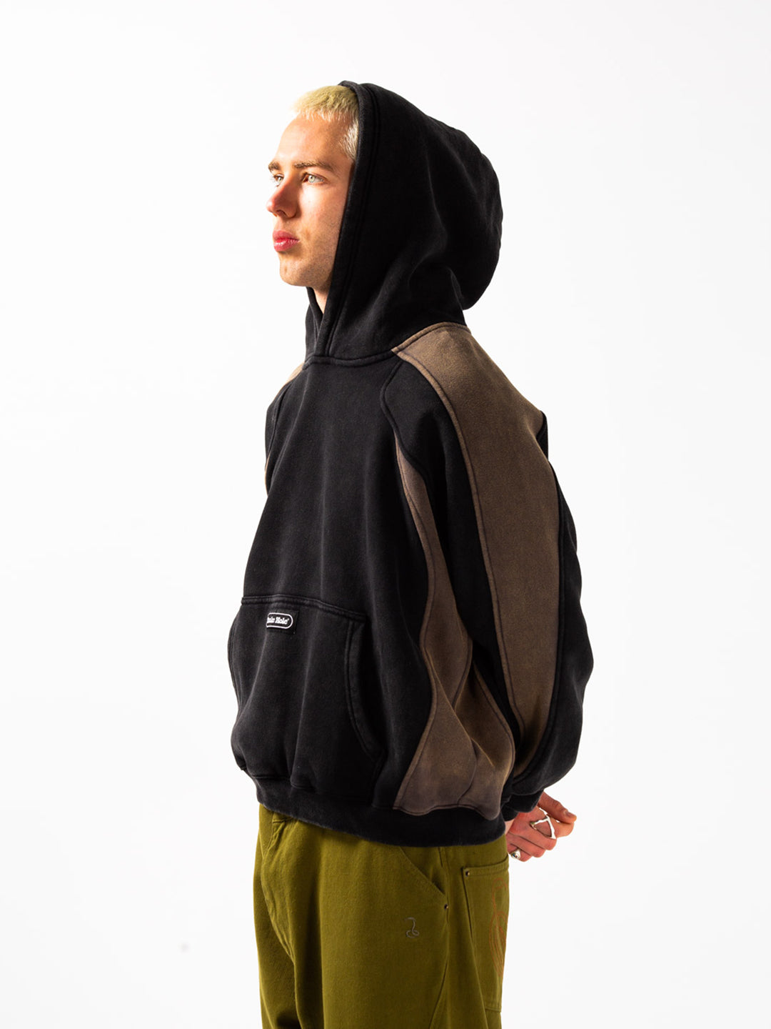 The 'Trackstar' hood is made from our plush 360gsm heavyweight brushed fleece, featuring our unique panelling with a heavy enzyme wash and branded woven label. The body has a cropped, boxy shape for a cropped fit. Finished with heavyweight 2x1 ribbing and large joey pocket on centre front.