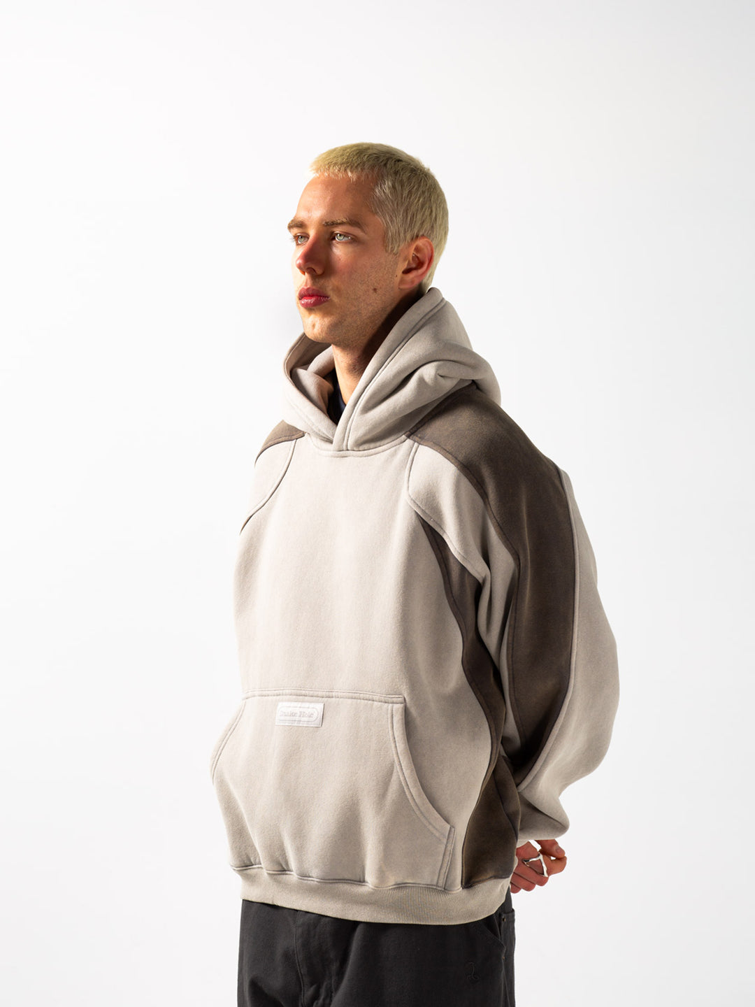 The 'Trackstar' hood is made from our plush 360gsm heavyweight brushed fleece, featuring our unique panelling with a heavy enzyme wash and branded woven label. The body has a cropped, boxy shape for a cropped fit. Finished with heavyweight 2x1 ribbing and large joey pocket on centre front.