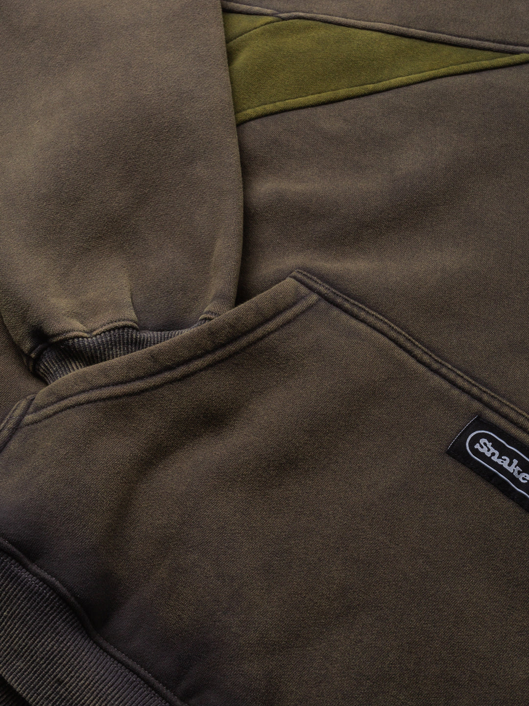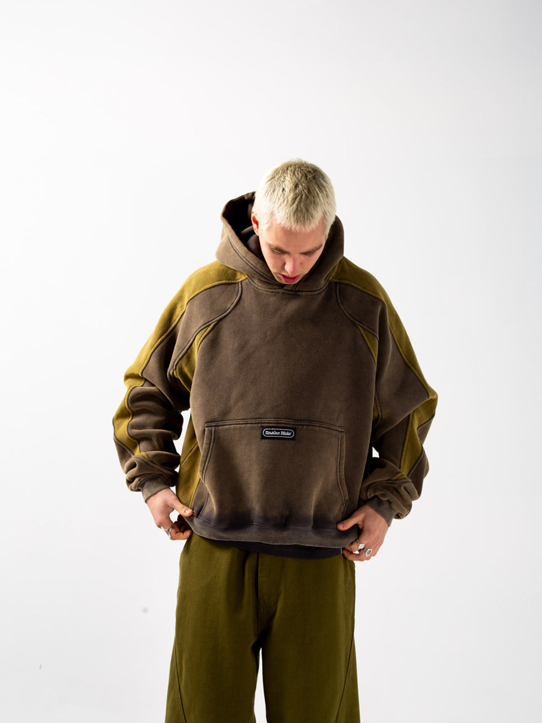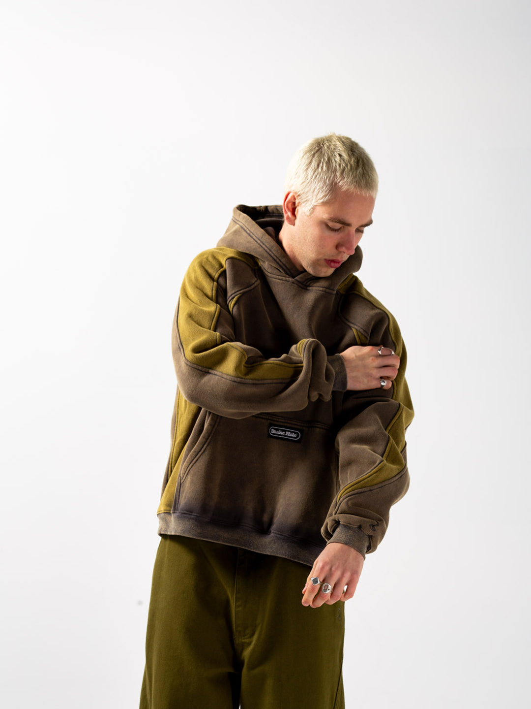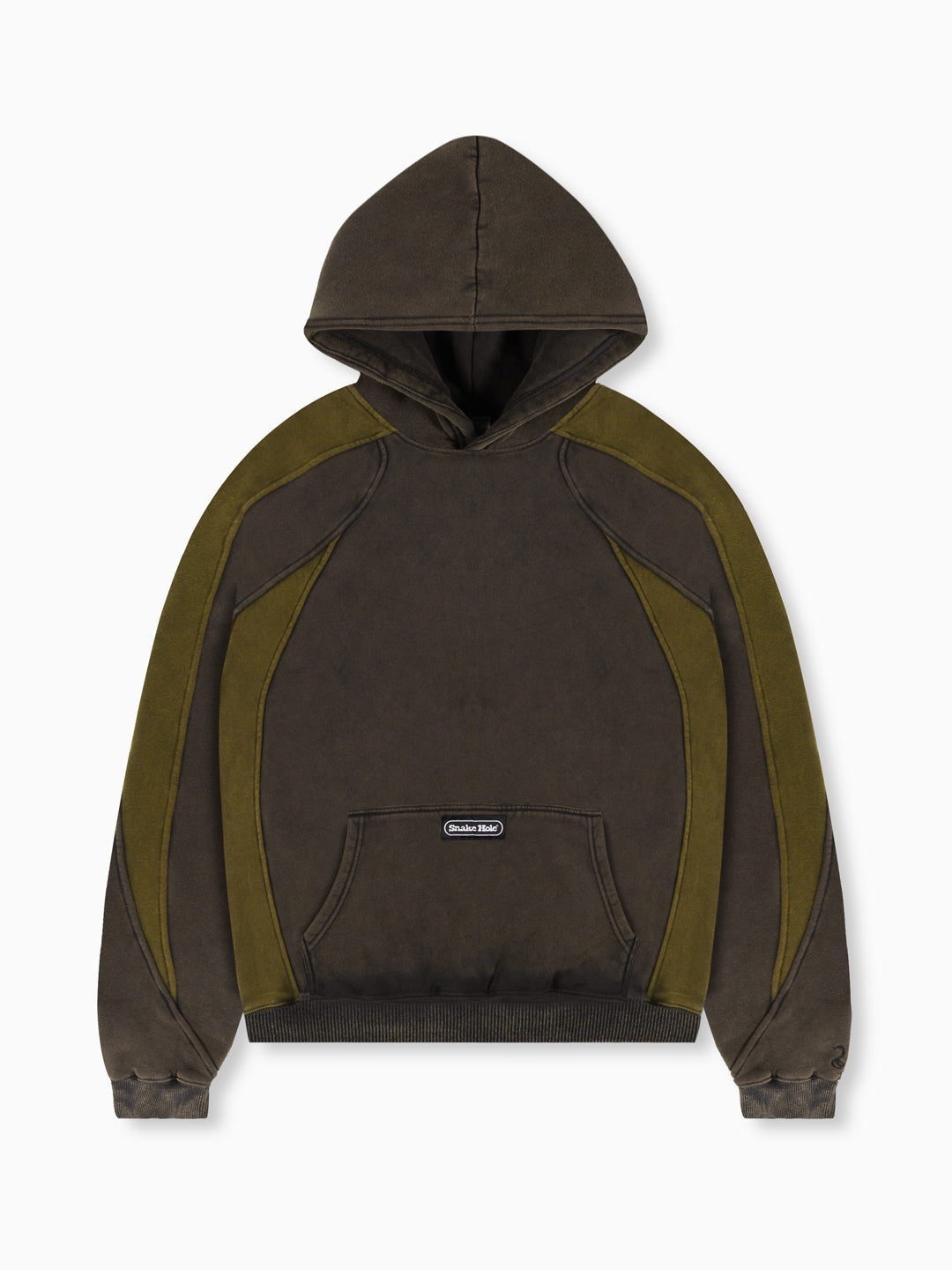 The 'Trackstar' hood is made from our plush 360gsm heavyweight brushed fleece, featuring our unique panelling with a heavy enzyme wash and branded woven label. The body has a cropped, boxy shape for a cropped fit. Finished with heavyweight 2x1 ribbing and large joey pocket on centre front.