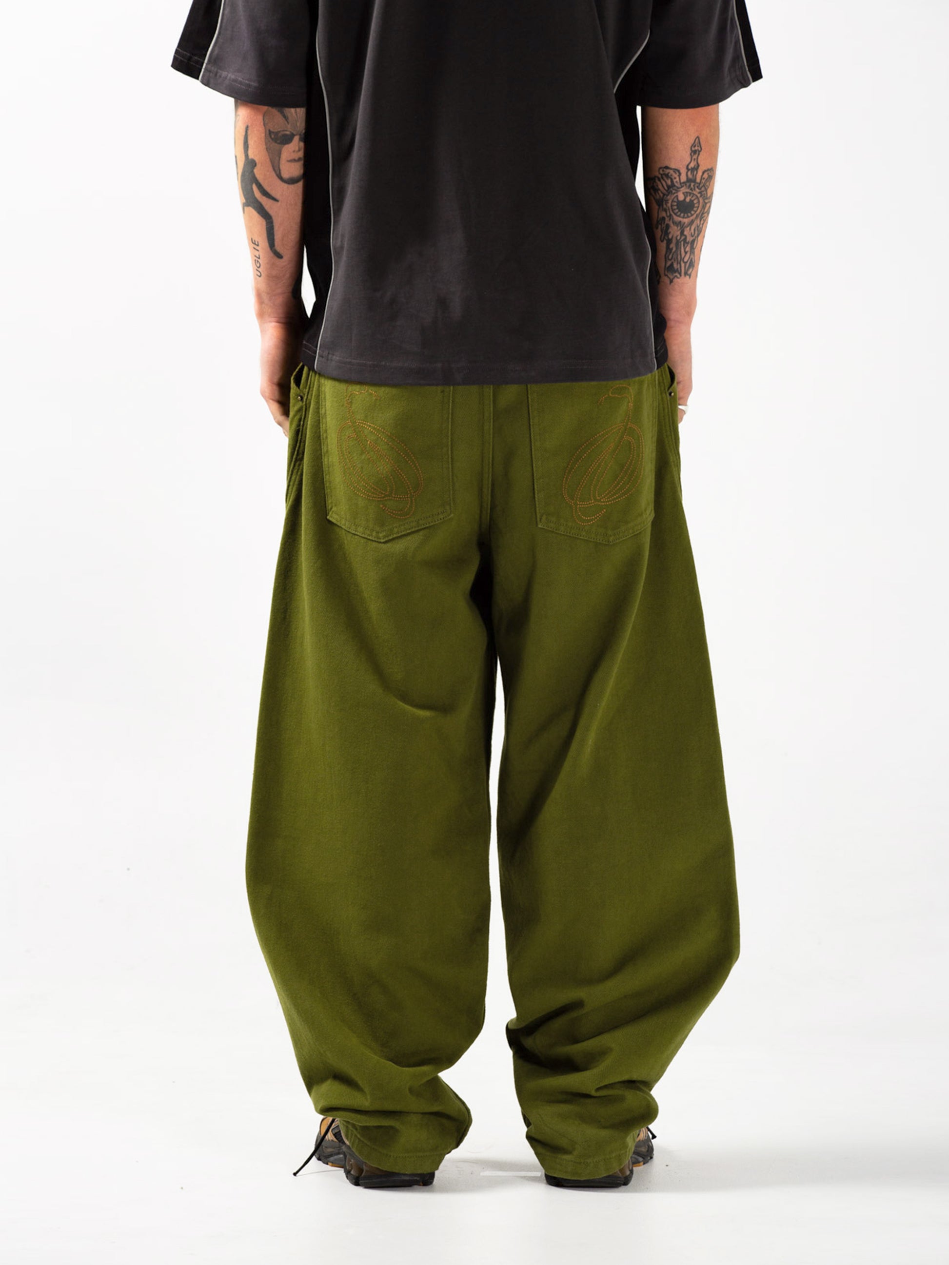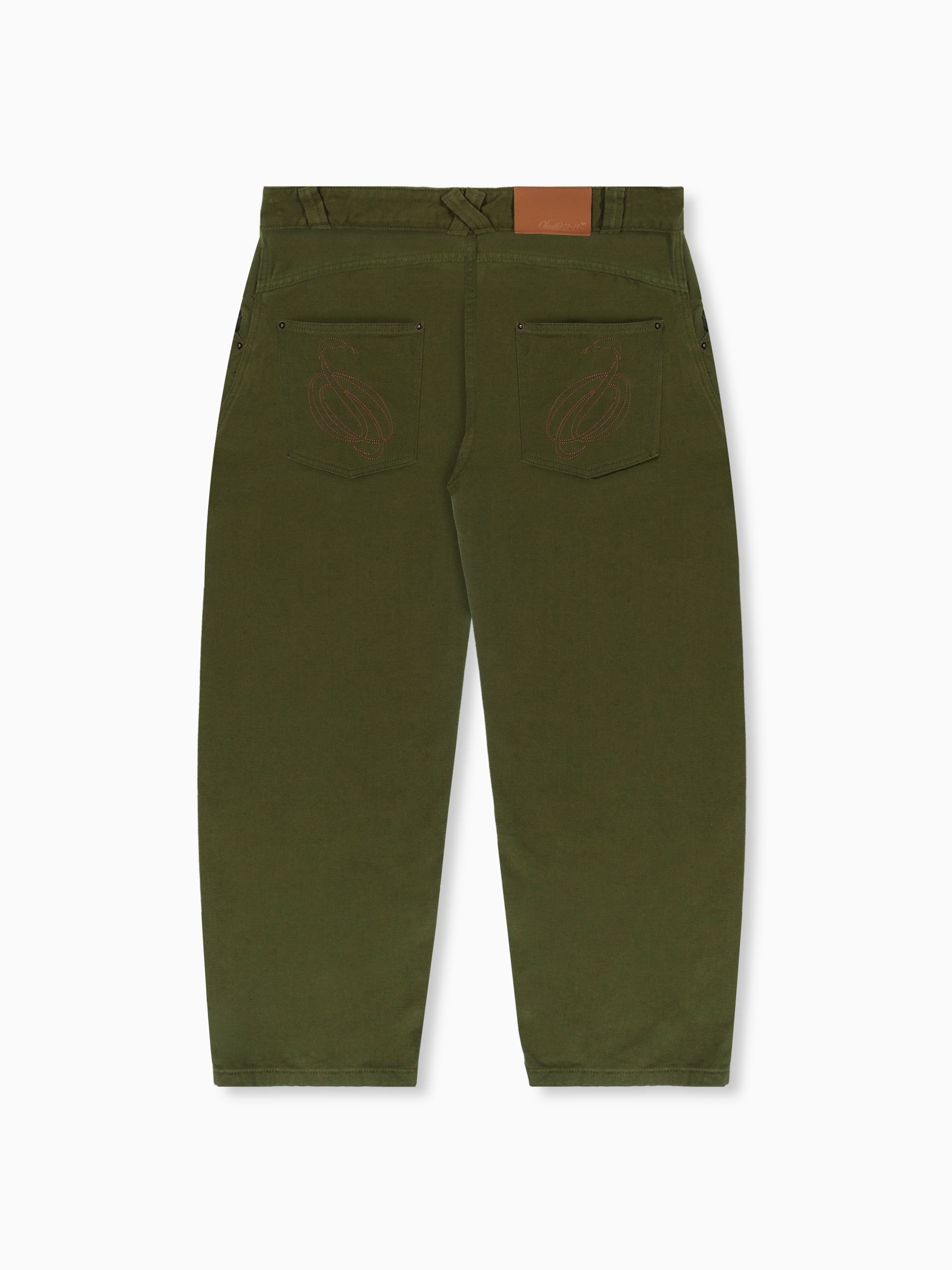 Introducing our ‘Twista’ cotton twills, designed with a relaxed, slightly ballooned baggy fit. Four pocket construction made from high-quality durable 380gsm cotton twill, featuring branded brass closure on waist, Cursive cobra artwork on back pockets and finished with our curved "Twista" panel running down the leg.