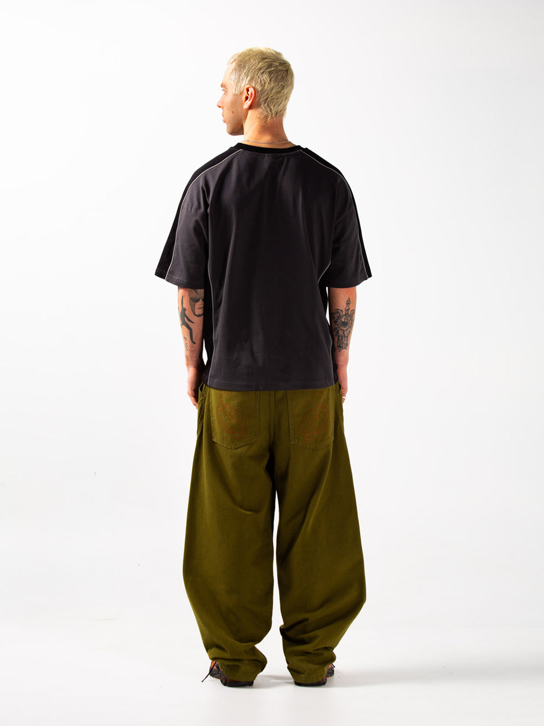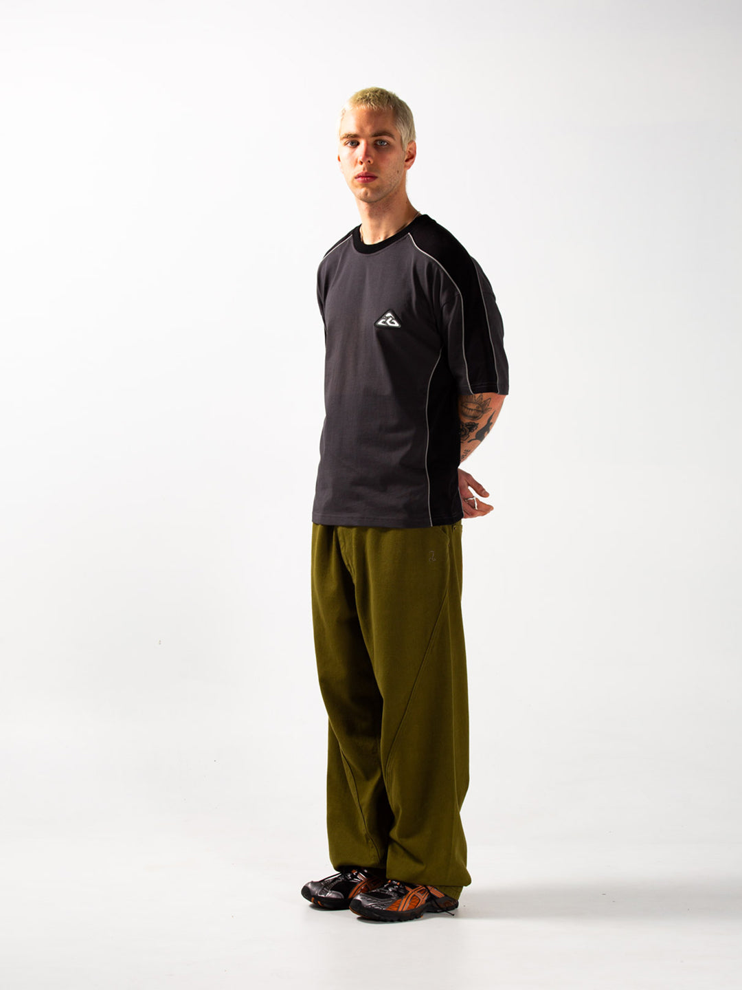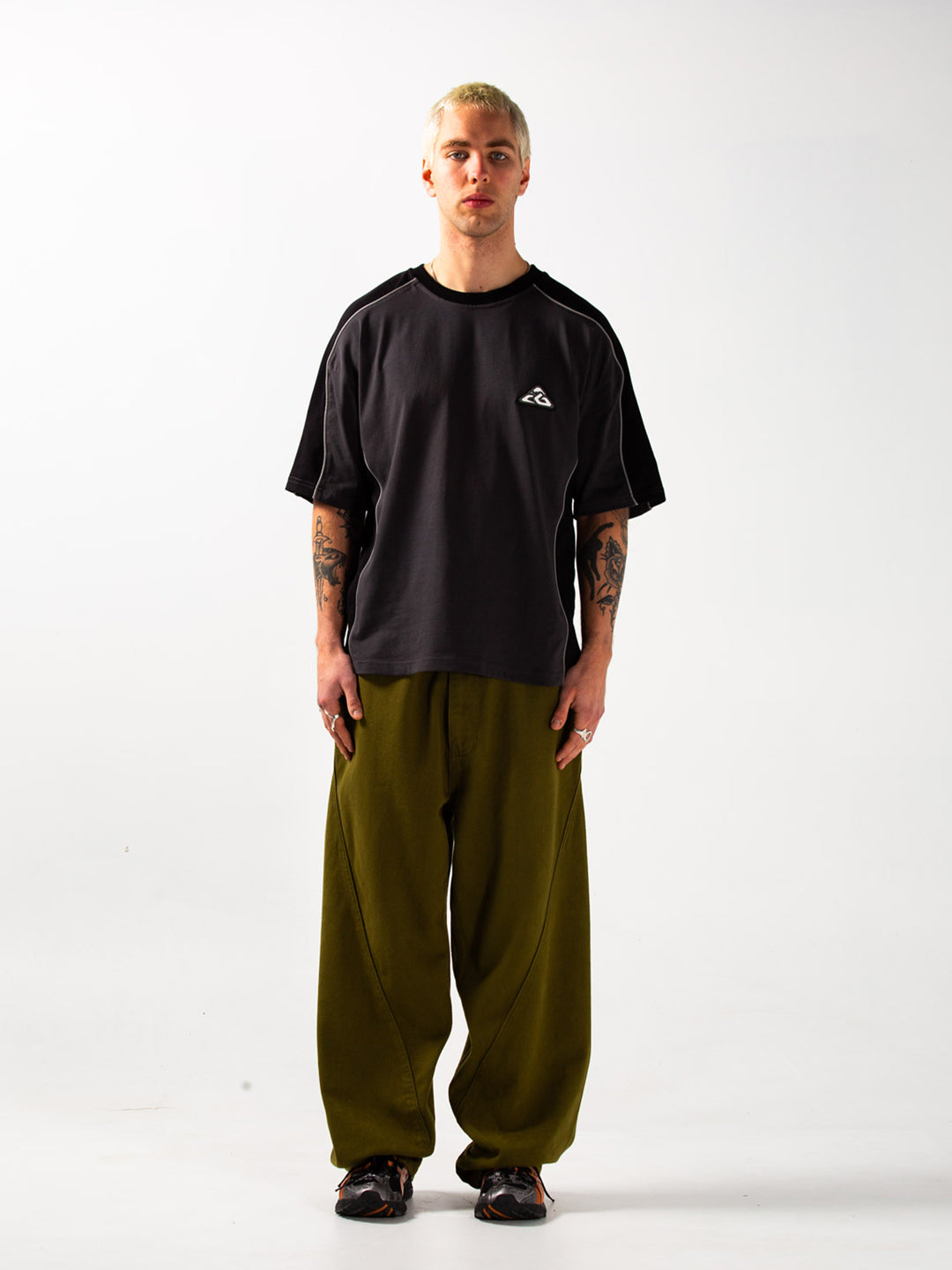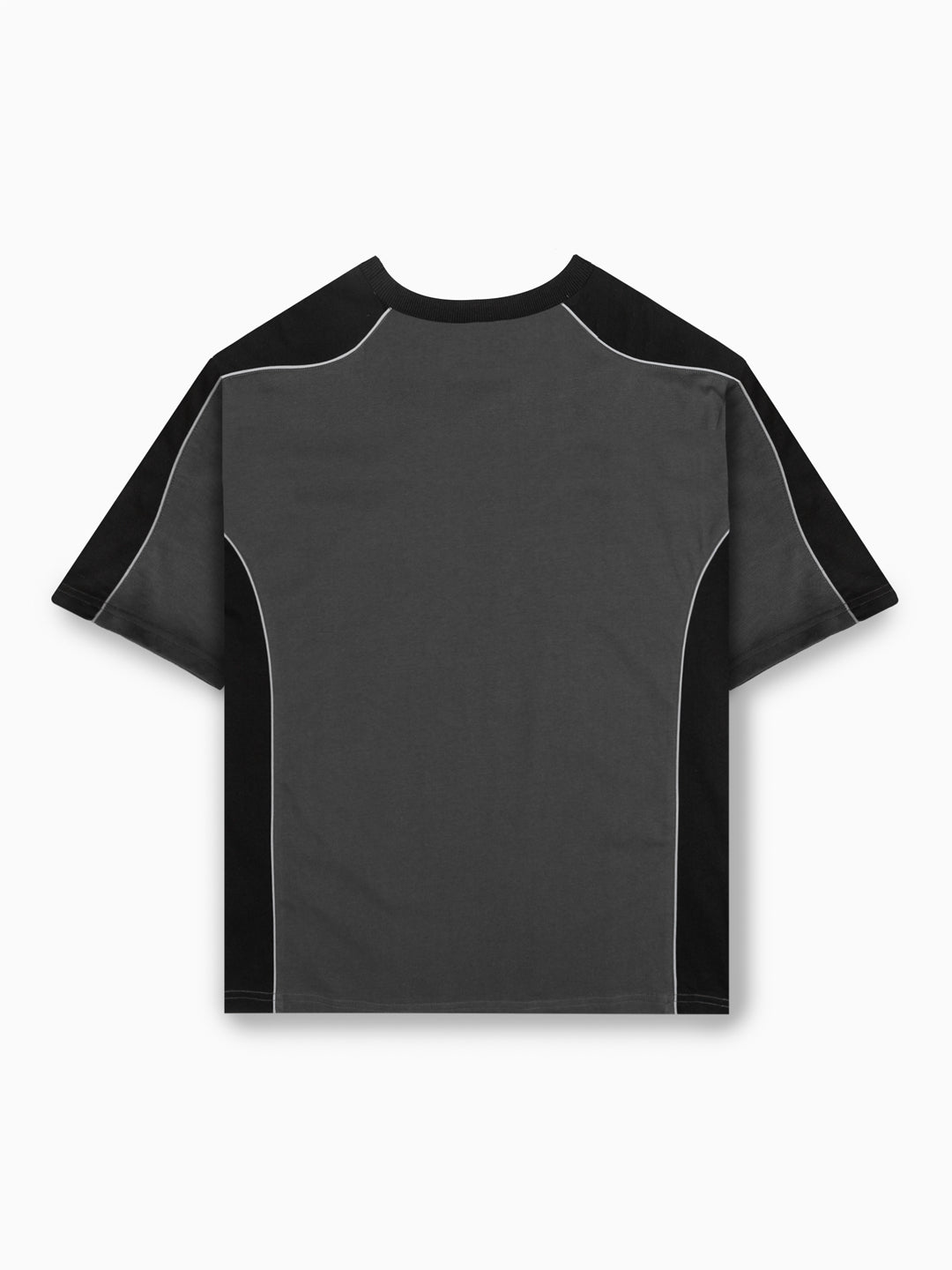 Heavyweight 250gsm 100% cotton tee featuring unique two-colour panelling with tonal piping throughout, heavy 2x1 neck ribbing and ’Trinity’ rubber label on front chest.