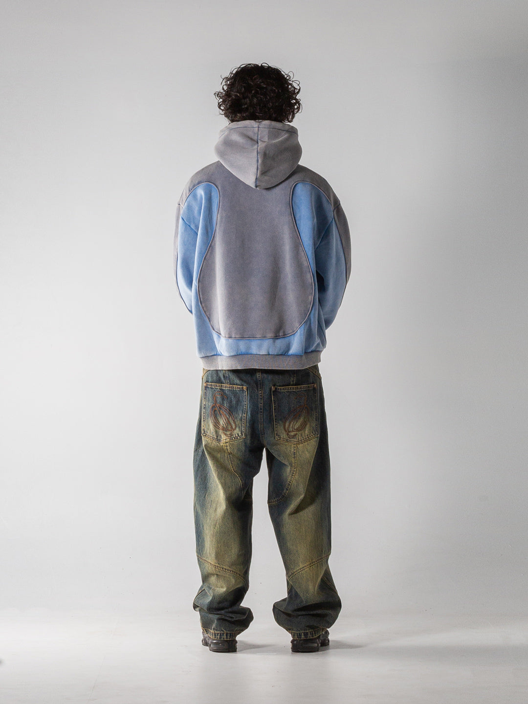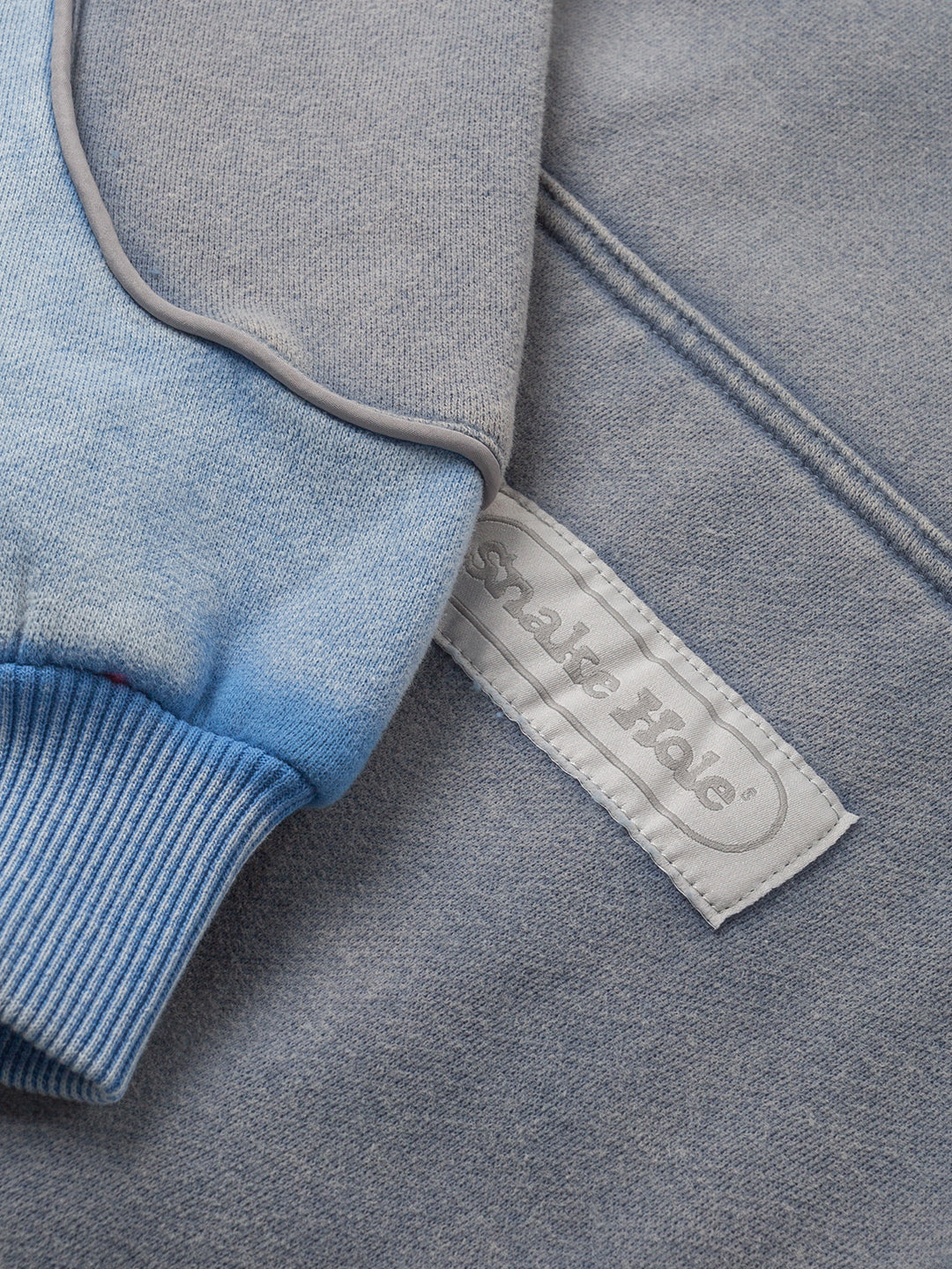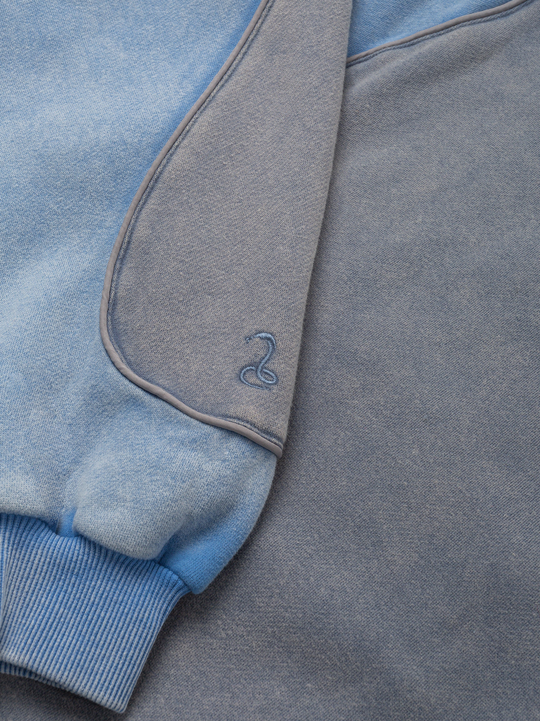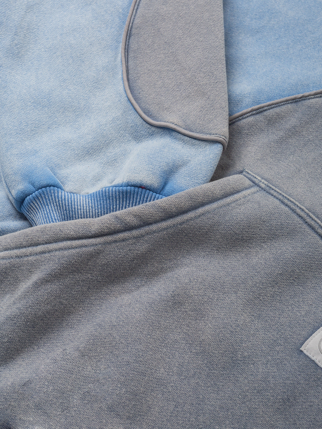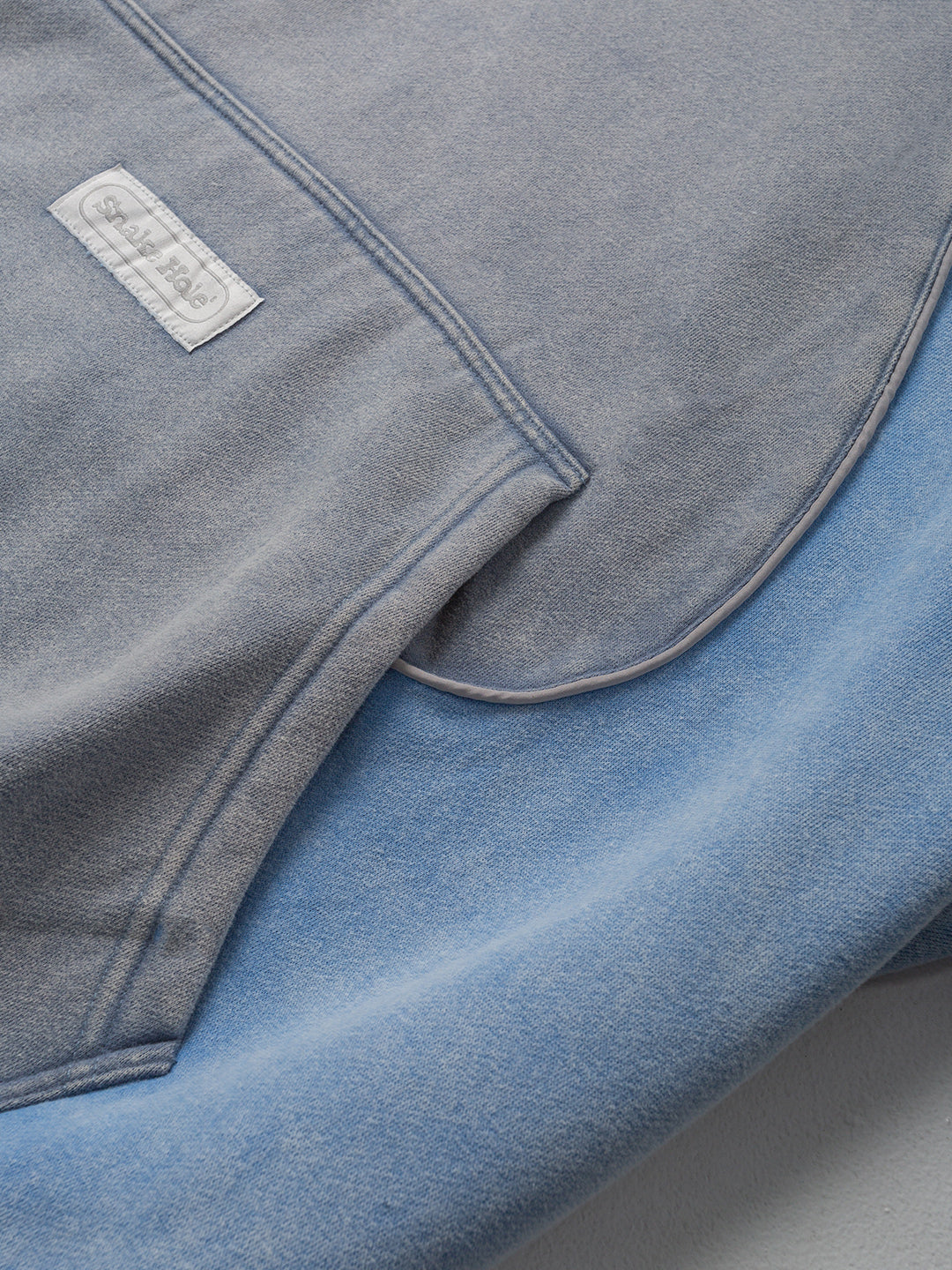 The Odyssey hood is made from our plush 360gsm heavyweight brushed fleece, featuring our unique tonal panelling with contrast piping and branded woven label. This piece has 90's flavour, with an exaggerated dropped shoulder giving the sleeves a baggy fit. The body has a slightly cropped, boxy shape for a relaxed fit. Finished with heavyweight 2x1 ribbing and large joey pocket on centre front.