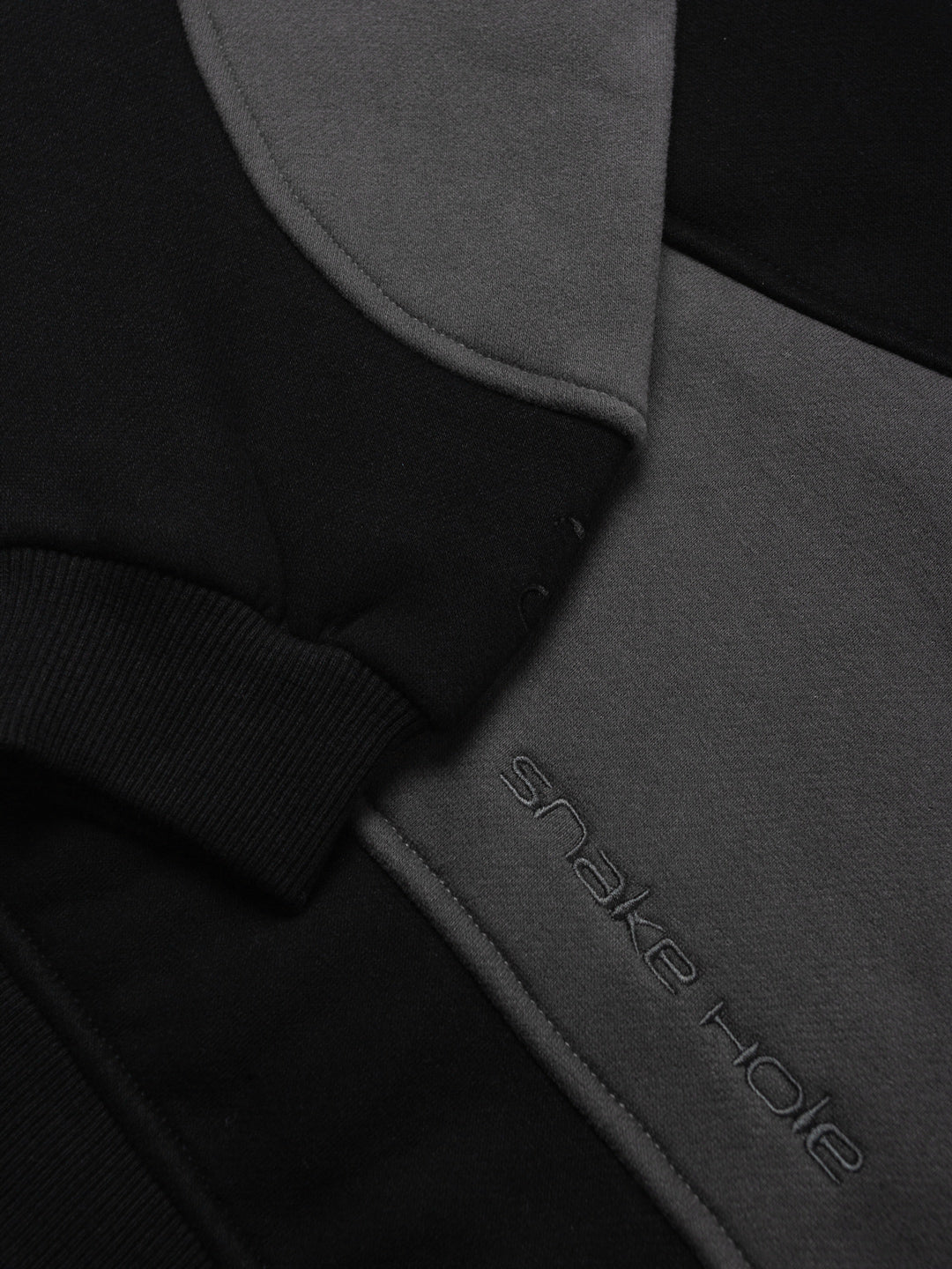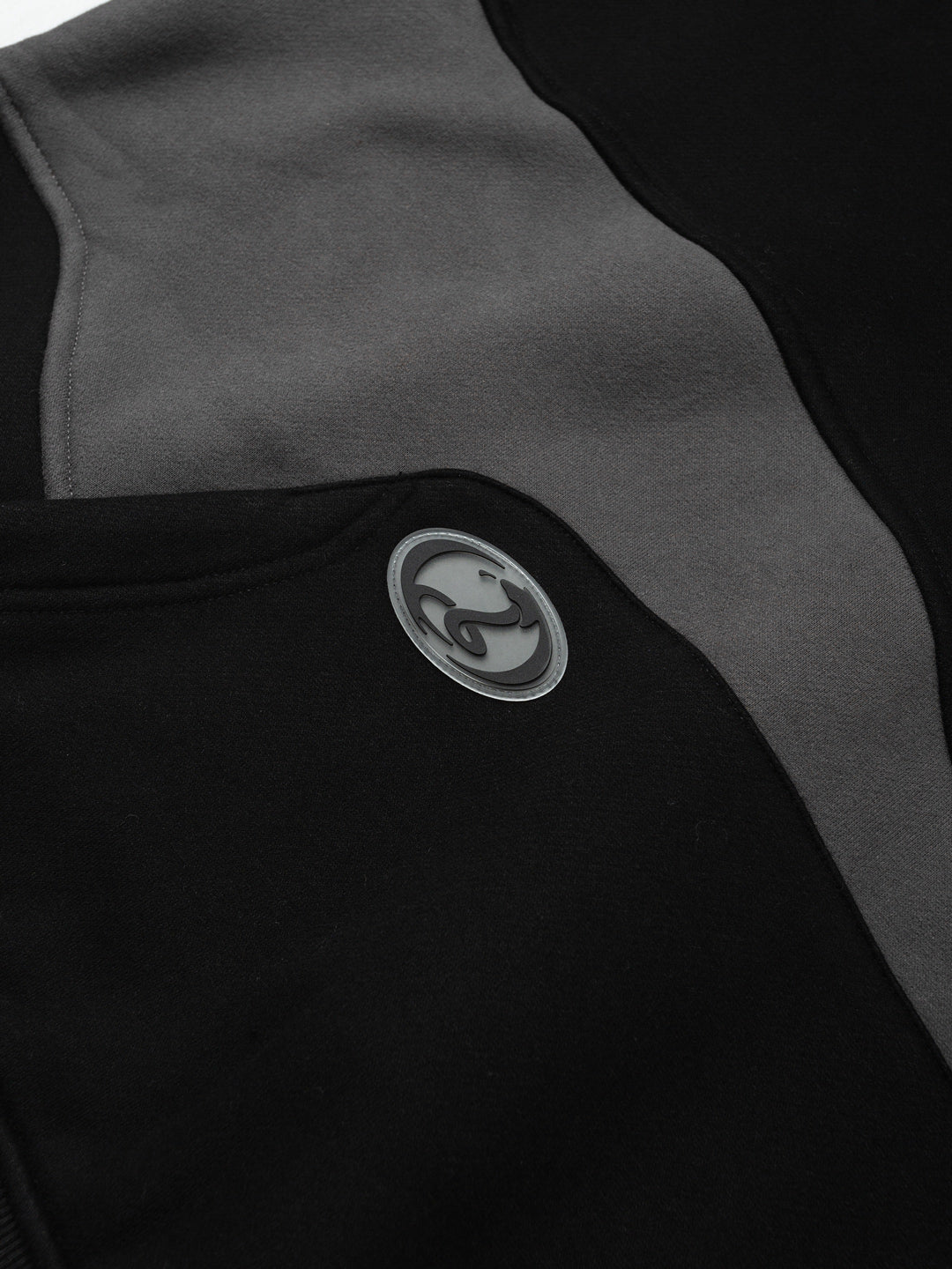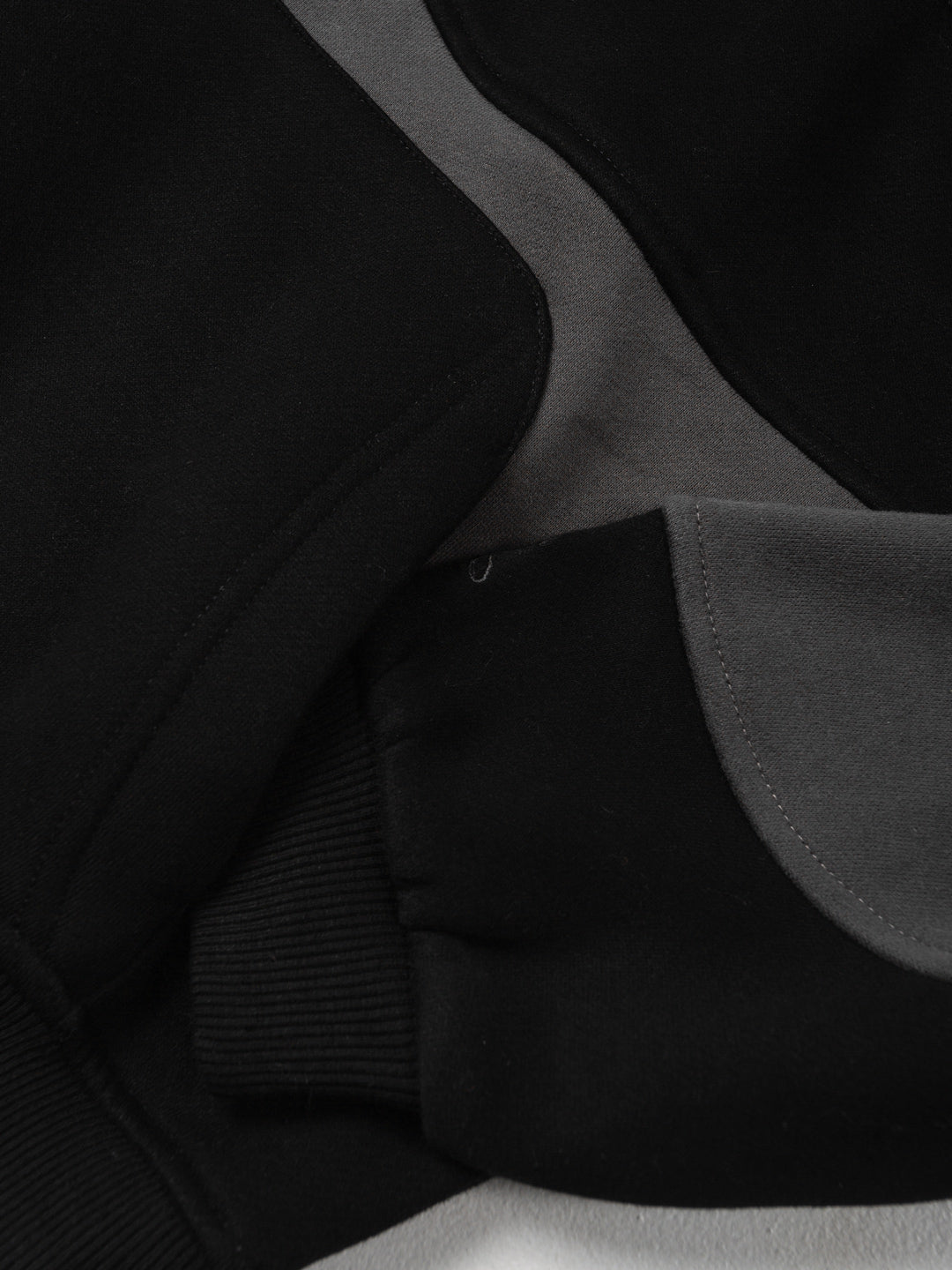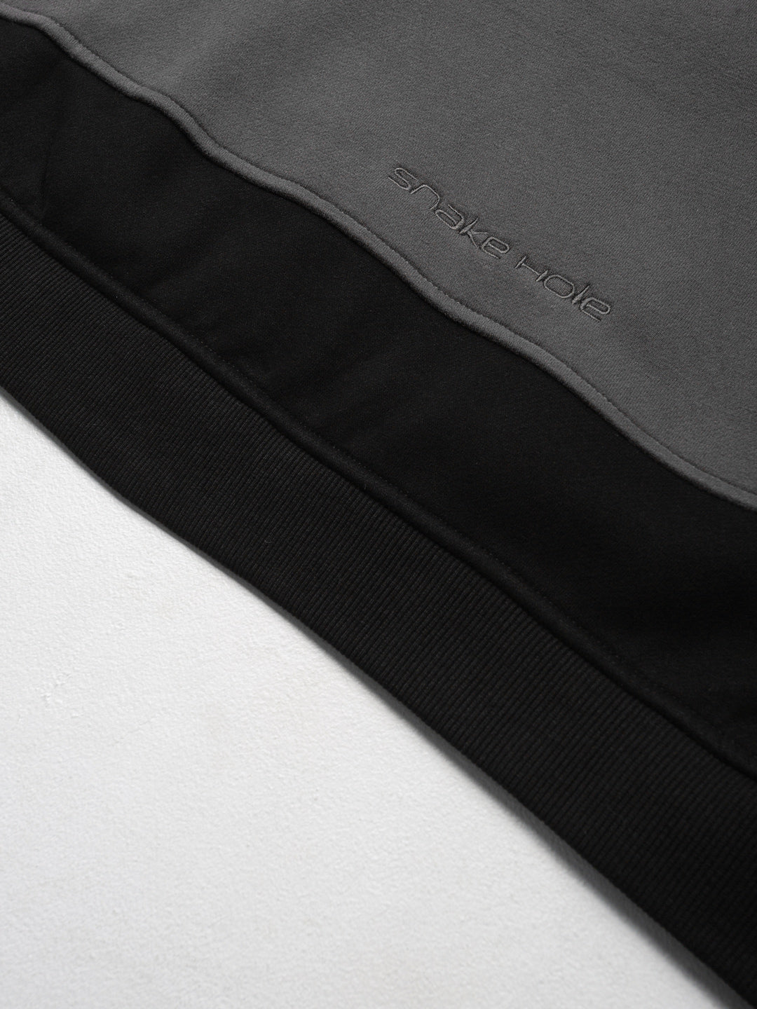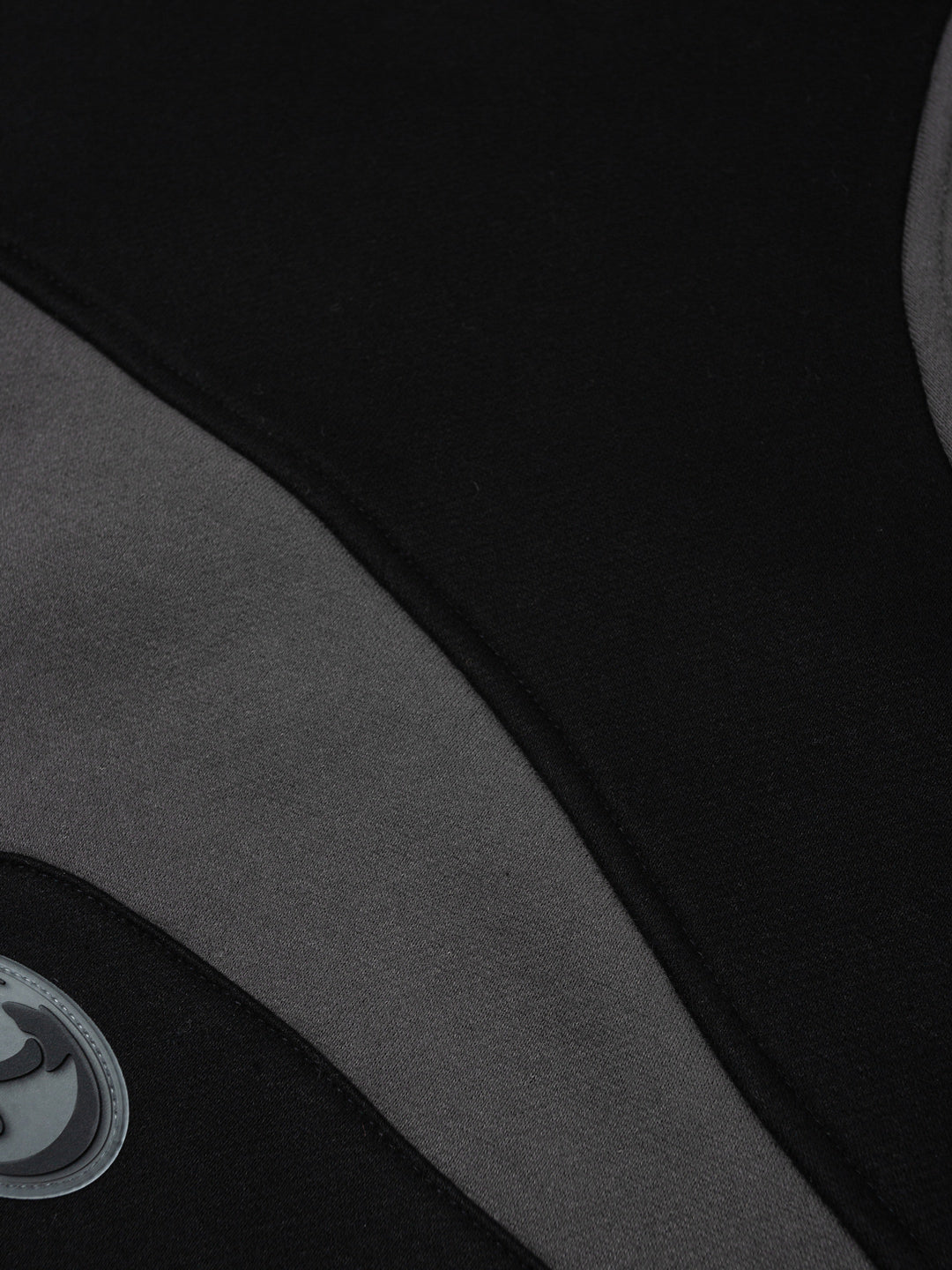 The 'Wave' hood is made from our plush 360gsm heavyweight brushed fleece, featuring our unique panelling and 'Ellipse' rubber label. The body has a cropped, boxy shape. Finished with heavyweight 2x1 ribbing and large joey pocket on centre front.
